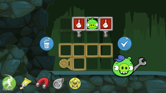 《捣蛋猪》官方中文代理版来袭。《捣蛋猪》(BadPiggies),由《愤怒的小鸟》(AngryBirds)的开发商ROVIO公司制作。一个从小猪的视角来创作的全新游戏!创建载具,通过飞行、爬行、滚动、旋转、撞击让小猪找到地图碎片、鸟蛋、蛋糕、钥匙……《捣蛋猪》中的主角是雀斑猪,形象延续了《愤怒的小鸟》中的造型。