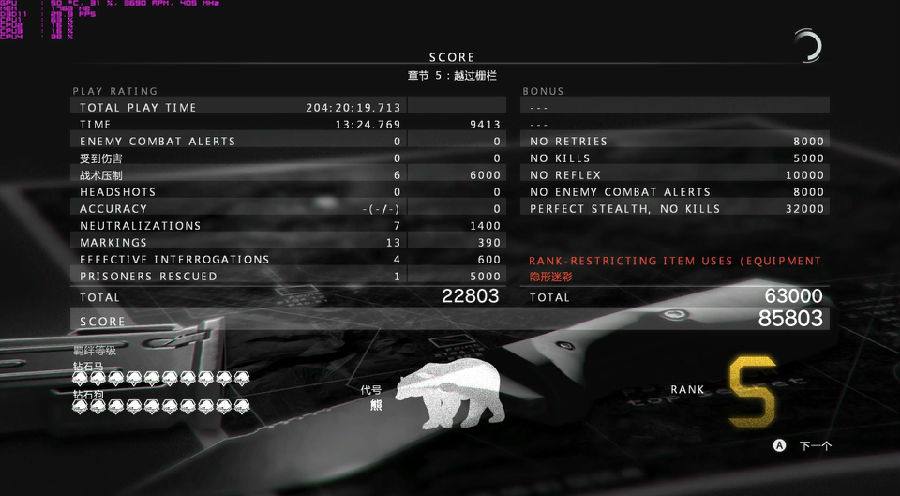 合金装备5:幻痛 过场动画跳过补丁;用于跳过任务结算完成后的结束过场动画,主要针对 46章关完成后载入动画播片程序崩溃跳出的蛋痛问题,以后再不用地面翻滚三周半求破 46章了。【使用说明】