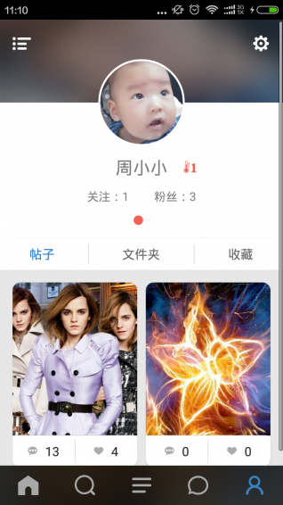 个人信息资料,包含已经发布的帖子,购买的货位,订单信息等