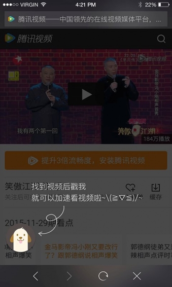 【更懂你】还在为追一部电视剧而下一个视频站点的APP而惆怅吗?只需要有视频加速狗,就能帮你在浏览器上看尽动漫,热剧,电影。