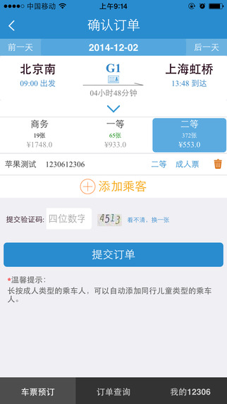 10、然后在预订界面,输入“验证码”后点击“提交订单”按钮,如图所示