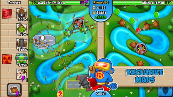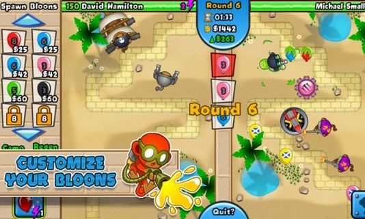 《猴子塔防对战版BloonsTDBattles》是一款策略塔防游戏。以猴子刺破气球为主题的特色作品,一直以来以可爱的小猴子造型,与直观却变化多元的气球设定而在同类作中占有一席之地。最新上架对战版是以猴子塔防5为原型的外传作品,这里就要让玩家们彼此分立两侧一同面对气球大军,比比看谁能在不断的猛攻下撑到最后!【游戏玩法】