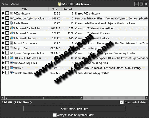 Moo0 DiskCleaner ,您可以轻松地清理您硬盘的任何数据。这是非常容易使用,而且你只需要检查的项目要清理,并按下“清除”按钮