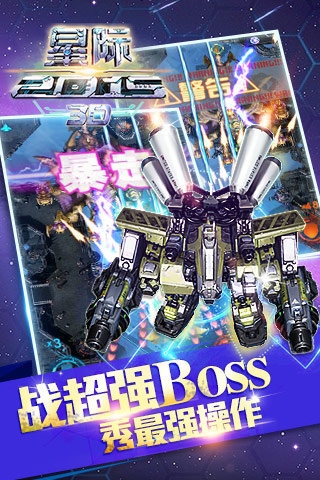 星际2015是一款以科幻机甲为题材的飞行射击游戏,这款游戏采用了java引擎开发,展现出超流畅的手感、超华丽的弹幕、超爽快的升级以及最新潮的战机合体,并为广大游戏玩家呈现了一个3D特效的华丽场景,让玩家仿佛身临其境,享受超爽的射击体验。
