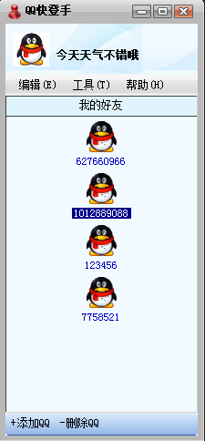 现在用户QQ每个人都有那么2、3个QQ,而每次都要输入很烦人,现在不需要再记着多个QQ账号和密码,只需要记着一个密码就可以。