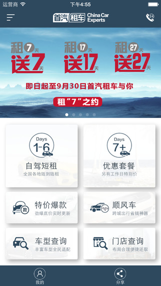 首汽租车坚持秉承“中国服务”的服务理念,为客户提供快速便捷的全新租车服务体验。首汽租车在成立之初,就成为国内外大型活动、商务会议的首选车辆服务提供商,不断为社会各界提供商品质的用车服务。遍布在中国大陆各主要城市及旅游地区的服务网络,不仅可以随时随地满足客户的租车服务需求,更为客户的安全行车保驾护航。首汽租车致力成为中国最佳的汽车租赁服务商,并立志为推动中国的汽车租赁产业和汽车工业的发展而努力。首汽租车秉承品质、高效、舒适的尊享服务理念,以长租服务、个人自驾、商务用车、新能源租用车、公交车改革和融资租赁为主营业务,服务网络遍布全国50余座热门城市。