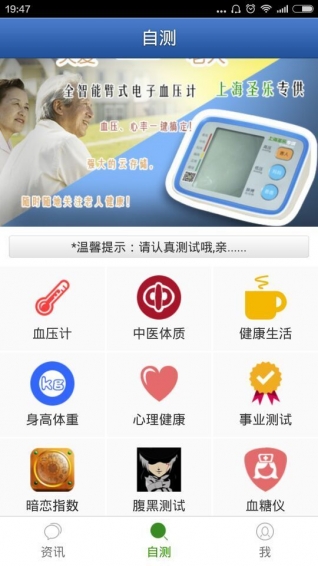 在这里,您可以查看最新健康资讯、交友交流,还可以体验多种健康测试。您不但可以在这购物,还可以在这里创业,打造属于您自己的交流圈。