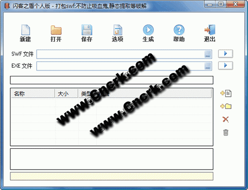 闪客之盾--专业加密打包swf,企业加强版可防止吸血鬼吸取到原始swf、pkzine提取到原始swf,防止录屏软件翻录、防止在虚拟机中运行。个人版只提供打包swf,没有加密强度