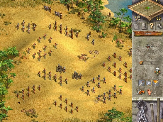 令人为之目眩神迷的游戏场景,十六世纪栩栩如生呈现在玩家面前。超过350种建物,教堂到守卫塔到淤草农场应有尽有。每个文明都有专属的视觉风格。贝多因人的营地大多是帐篷,而摩尔人则喜欢住在螺旋状的回教尖塔里。游戏巧妙的结合了2D及3D效果。地形是全3D绘製,有32层的高低差。而兵种及建物都是事先绘製好,但与背景融合的天衣无缝,更能展现出细腻的画风。