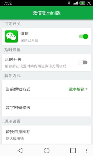 快速锁定:两步设置密码,即刻享受微信隐私秘密保护多样解锁:数字、图形、手势、时间密码任你选