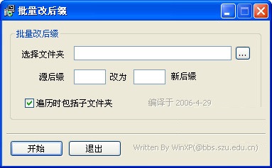 文件后缀批量修改器 V1.0 简体中文绿色免费版 批量改后缀软件是一款支持批量修改文件后缀名的工具,支持遍历时包括子文件夹。使用起来也非常方便,只要在源后缀填上开始的后缀然后在新后缀那填上要改的后缀名即可。