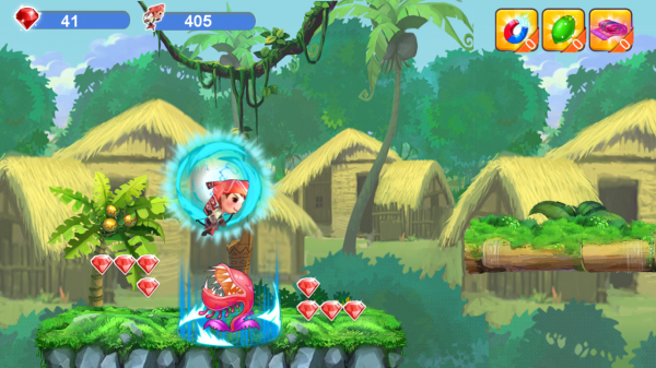 《勇士大冒险》这是一款跑酷()类型的跨平台休闲手机游戏。游戏画面风格卡通、细腻、色彩亮丽、游戏节奏感较强,2分钟即可完成一局游戏。在这款游戏中,所有情节的发生和道具的取得以及各种金币获取消费等活动都是在网络上及时发生的。为迎合目前市场玩家的反馈,整款游戏主要设置三个关卡,分别是黎族村落、海洋、森林,三个关卡都富有浓厚的海南文化元素。游戏玩家需要通过跳跃、躲避和使用道具来取得最好成绩,整个游戏拥有优雅,爽快的速度感。 《勇士大冒险》游戏中的道具及场景均具备有浓厚的海南岛元素,比如大榕树、凤凰树、椰子树、贝壳、黎族的图腾、蛙雕塑、黎族草屋等。玩家需要躲避的物件有:地上的针刺、不会动的毒蘑菇、食人花、眼镜蛇、会动的野猪、陆地间的沟壑。需要捡拾的物品有:各种颜色的宝石、黎锦飞毯、大力槟榔等。