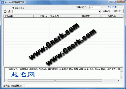 特点:文件管理器一样,打开一个access文件,立即显示出密码