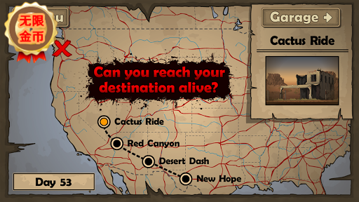 《死亡战车EarntoDie》采用了关卡制,玩家需要在地图中从左边起点跑到右边终点。逃生路上会遇到僵尸和障碍,所以玩家不可能一口气跑到终点。当燃料用光后,本轮游戏宣告结束,玩家需要重返起点,改装自己的车辆,争取下次逃生能够看到希望。在这一过程中,玩家既能体会到屠戮僵尸的快感,又能体会到竞速游戏的乐趣。当回到车库时,改装的玩点也会让玩家感到有趣。这就是《死亡战车EarntoDie》的成功之处。