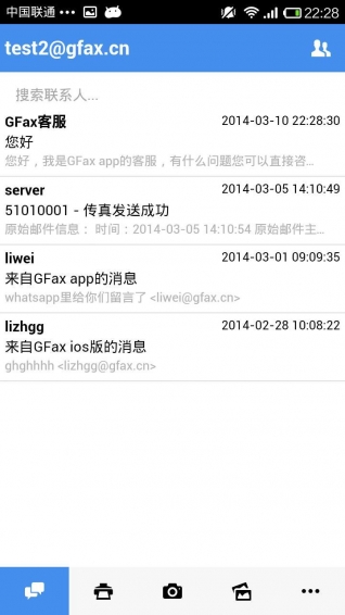 GFax传真通是一款传真、扫描软件,方便用户随时随地收发传真。同时也可以把gfax邮箱作为手机邮箱使用,快速收发邮件。GFax提供简便的图像处理功能,把手机拍摄或保存的彩色照处理成便于传真的黑白图片。用户也可以把它当作扫描软件使用,处理过的图像可以作为邮件免费转发,是一款绝佳的移动办公工具。【软件特色】