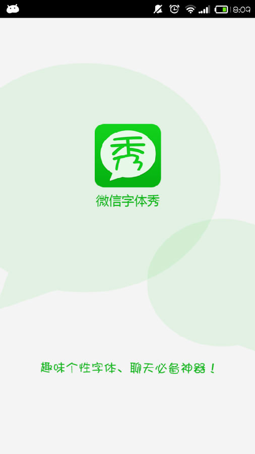 微信字体秀app v1.3 安卓版 微信字体秀免费为你更换微信中的字体,让微信内的字体像QQ一样炫彩。它含数十种趣味字体,如粽子字体、中国心字体、小熊字体、奶瓶字体、便便字体、猫猫字体、兔兔字体等,趣味生动,让你手机聊天不再单调,每句话都充满乐趣!
