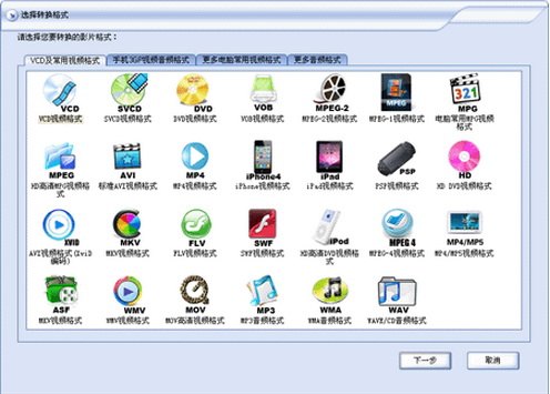5、支持将您的VCD、SVCD、DVD光盘视频转换为MP4、3GP、AVI、VOB、FLV、SWF、WMV、ASF等等几十种流行的视频格式。