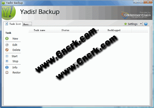 Yadis! V1.9.6.0 英文绿色免费版 Yadis 我们的第一号软件是 Yadis!该软件是一款简单易用的备份工具,可以解决你的大量麻烦。该软件通过实时创建基于任何目的你所选择的数据的拷贝(每当你改变你的文档的时候)的方式来保卫你的私人数据。你不想要计划安排拷贝!每当你作出改变,你的数据就会被保存。如果备份目的文件不可访问那么备份将被延迟直到备份目的文件再次可以访问为止