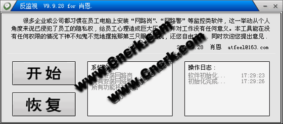 反监视(UnControl) V9.12.16 简体中文绿色免费版 很多企业或公司都习惯在员工电脑上安装“网路岗”、“网路警”等监控类软件,这一举动从个人角度来说已侵犯了员工的隐私权,给员工心理造成巨大压力,并对工作没有任何意义。被安装这类软件后,员工电脑上的所有操作如QQ聊天记录、UC聊天记录、飞信聊天记录、上网记录等等。。都有会赤裸裸地展现在老板的眼皮底下!