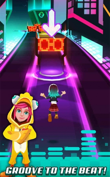 3.在前进的时候和别的跑酷游戏不一样的地方就是这个游戏还结合了音乐节奏在里面,玩家们每经过一段路就会出现一些需要玩家们通过操作来打响节拍器的地方,这些会让玩家们拿到一些得分,并且有些特殊的节拍器还会触发奇遇哦!