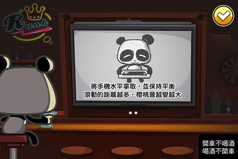 熊熊醉不醉游戏 v1.21 安卓版 熊熊醉不醉是一款非常考验玩家协调能力的休闲类手机游戏,在这款游戏中,玩家需要开启重力感应系统,同时将手机水平放置并让游戏中的樱桃保持滚动,为了让樱桃越滚越大,玩家必须保持专注,挑战自己协调能力的极限所在。