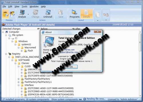 Total Uninstall V5.42 英文官方安装版 Total Uninstall 能帮你监视软件安装的所有过程,记录下它对系统所做的任何改变,比如:添加的文件、对注册表和系统文件的修改,并制作成安装前和安装后的快照。卸载软件时,不需要使用卸载程序,直接通过该软件便可将其完全地清除出系统,不留下任何痕迹。从而保证了系统的清洁。