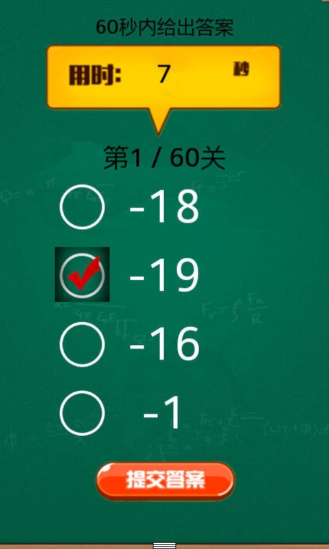 闪电算术是一款非常有意思的算术类休闲游戏,在这款游戏中,玩家需要在有限的时间内尽可能多的完成系统给出的算术题,另外,随着关卡的增加,出现数字的频率也会越来越快,玩家所面临的挑战也会越来越高,算术锻炼也能达到最佳效果。