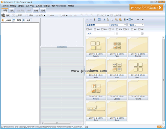 Ashampoo.Photo.Commander是一款快速、方便和功能强大的浏览、组织、增强、编辑和归档图片及数码照片的工具,支持60多种图像格式,及常见的音频、视频格式。界面美观,支持皮肤更换,对系统资源占用更小,启动更快。支持全屏幕、幻灯片、设成桌布、简易的特效、改变大小、批次转文件功能等等。【软件特点】