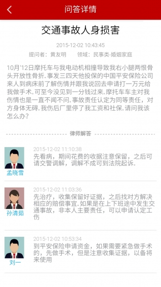 有事找律师是一款由北京海若科技有限公司开发的移动互联在线法律服务应用,经过2年在律师和用户上的双重积累,在原有在线咨询 招标上又发挥出手机设备的一些特有功能,如众筹功能,招标功能,律师与律师跨区域合作 推送功能等。为用户打造口袋法律管家,为律师量身打造的移动案源神器。*找律师:注册律师覆盖全国95%以上的城市,通过自动定位为解决法律问题的用户,提供合适靠谱的律师对接,用户可通过私信 电话等方式随时获得服务帮助。