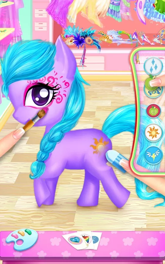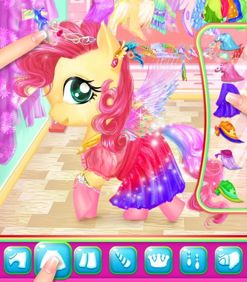 极光闪烁,雷声辉光和蓝草蹄——三个漂亮、美好的神奇的小马!你爱小马吗?当然,谁不?神奇的呢?甚至更好!你喜欢和洋娃娃玩装扮,但是你知道什么是更好吗?打扮神奇的小马!神奇的小马沙龙让你经历的喜悦照顾一个神奇的小马,给他们之后他们一直想要的!太酷了!让小马干净和漂亮的可以在温泉阶段!选择从不同的华丽弥补弥补阶段!帮助挑选漂亮衣服打扮阶段和翅膀!,可爱的照片,照片中的小马阶段!多么令人兴奋啊!想玩一个神奇的小马吗?现在是你的机会!神奇的小马沙龙允许您选择一个这三个漂亮女孩去看医生和做漂亮!了解这些小马给你的每一个独特的个性…了解他们所有!神奇的小马沙龙,每一天都是沙龙的一天!