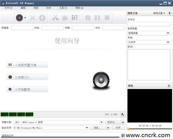 Xilisoft CD Ripper(CD音乐提取转换工具) 6.3.0.20120227 绿色版 XilisoftCDRipper是一款多用途CD提取和音频转换软件.支持将音频CD提取为所有流行的音频格式,包括Mp3,Wav,WMA,OGG,Mp2,VQF,APE,并且允许你在这些格式之间相互转换.还能从远程CDDB数据库获取CD信息.CDRipper支持ID31和2标签。