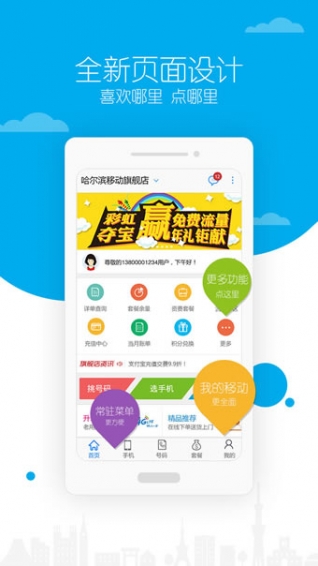 随时随地查账单、充话费、办业务,还可选手机、选号码、找优惠、下软件……无线精彩、一手掌握移动生活旗舰店客户端仅支持黑龙江移动客户使用。安卓版现已抢先推出,使用IOS的小伙伴们敬请期待哦。
