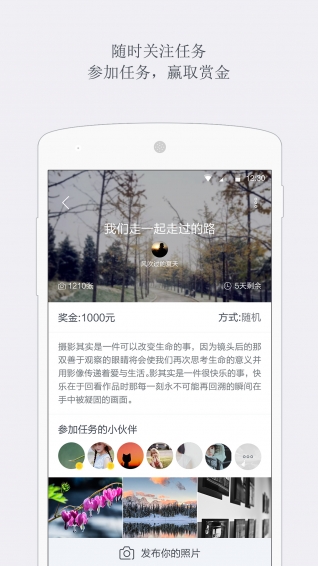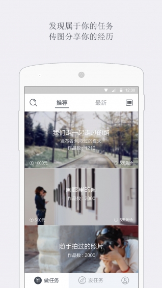 2、调整应用结构,话题更改为任务,可发布任务设置赏金收集美图。
