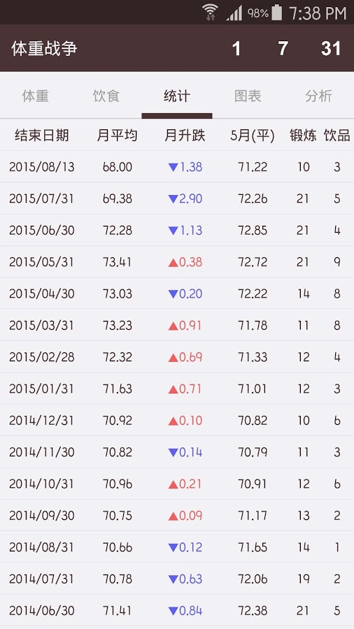 它为您提供有关体重的各种图表和统计数据。
