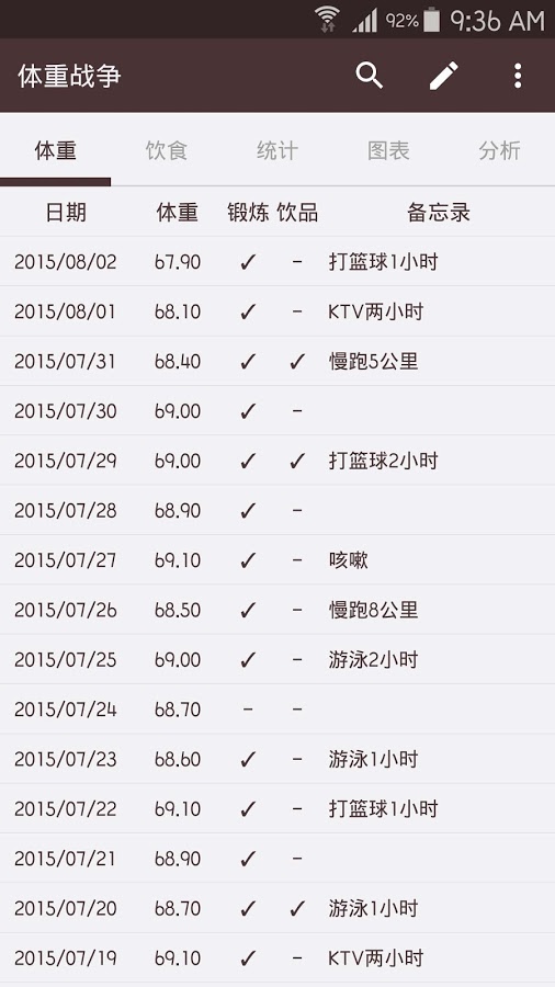 这样,您可以检查记录,管理自己的体重。