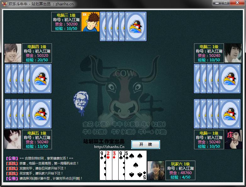 《欢乐斗牛牛》是腾讯游戏推出的一款桌面休闲扑克游戏,这款游戏拥有速度快、紧张刺激等特点,主要流行在湖南、广东、广西地区。小编今天带来的是欢乐斗牛牛单机版,这款游戏玩法简单,斗智斗勇,深受很多休闲玩家的喜欢,欢乐斗牛牛分为:看牌抢庄、随机庄家、世界大战。【游戏玩法特点】