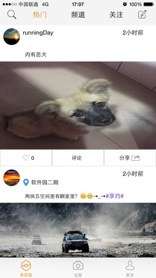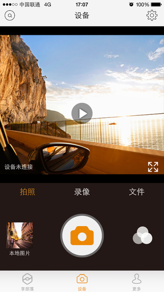 享部落app苹果版是一款行车记录仪与运动DV的控制软件,享部落app苹果版支持wifi连接行车记录仪/运动DV,进行实时播放,预览,回放,支持图片与视频下载基于视频与图片分享的社区软件,便于用户分享,互动。【软件特色】