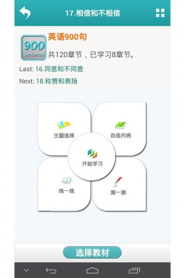 5、教材内容查看支持教材内容按课程或自选列表显示。支持单句及同类短句显示、播放