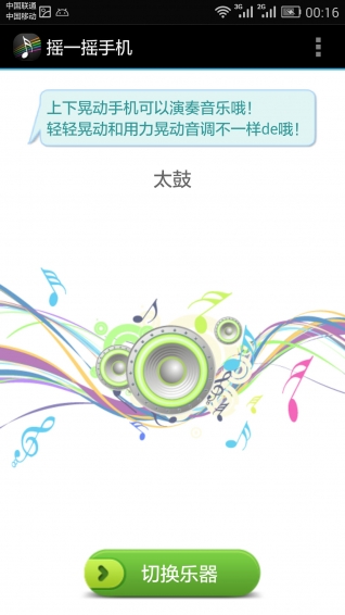 手机音乐摇一摇 v3.3 安卓版 音乐摇一摇是一款非常特别的手机音乐游戏,在这款游戏中,系统会自动识别用户晃动手机的力度,并根据力度分别发出do,re,mi,fa,so,la,xi 七个音调,玩家可以放飞想象,演奏出奇妙的音乐。