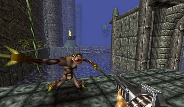 恐龙猎人是一款FPS第一人称射击游戏,游戏画面很精致,纹理清晰,质感柔和。游戏射击感很强,同时也是一款十分血腥暴力的游戏。这款于1997年发售的游戏终于在今日发布了重置版本,画面、设置、游戏设计等方面都有了提升。作为一款在欧美畅销的游戏,血腥和暴力是不可或缺的元素。人与恐龙惨烈的厮杀给玩家留下了深刻印象。《恐龙猎人》讲述了两大种族之间的未来战争,本次故事背景设定在了恐龙横行的时代。夸张的武器与充满野性的世界观相结合,给人以与众不同的游戏感受。【游戏特色】