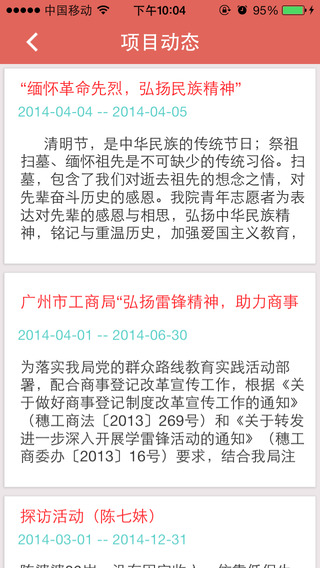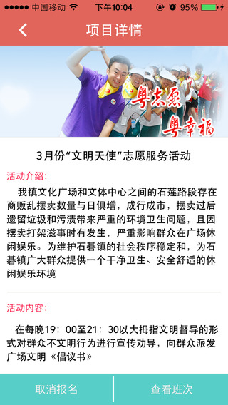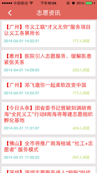 -志愿资讯,可以查看广东省境内的一些志愿服务活动的资讯,报名参加志愿者活动。