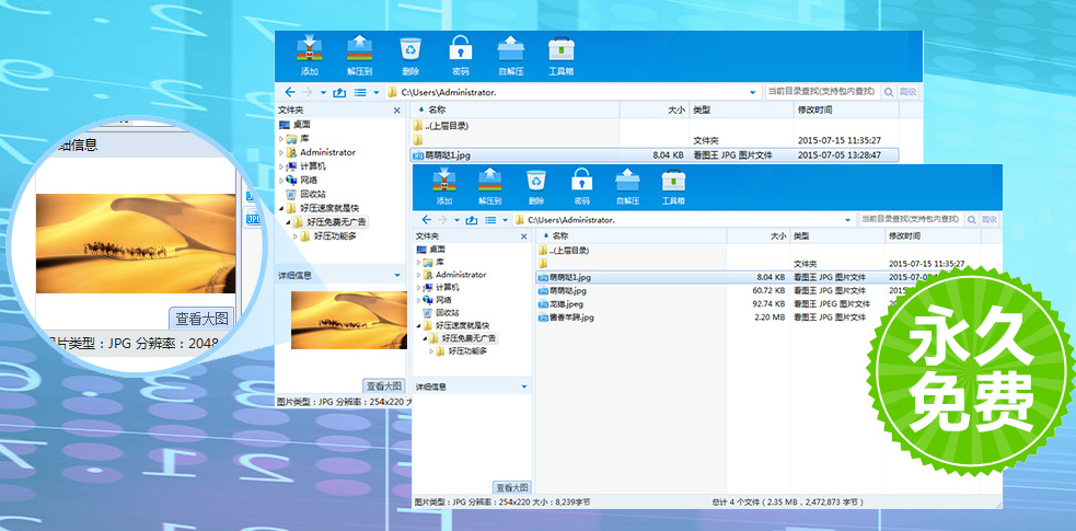 1.精致压缩,安全无毒安全、无病毒、无插件,业界良心,民族企业,中国压缩软件第一品牌.