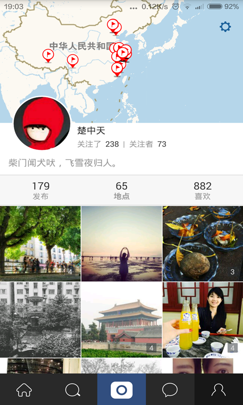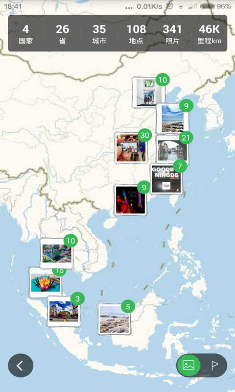Place会把你标注了地点的照片在地图上标记出来,你可以方便地查看自己去过几个国家几个省市,并自动生成足迹地图。