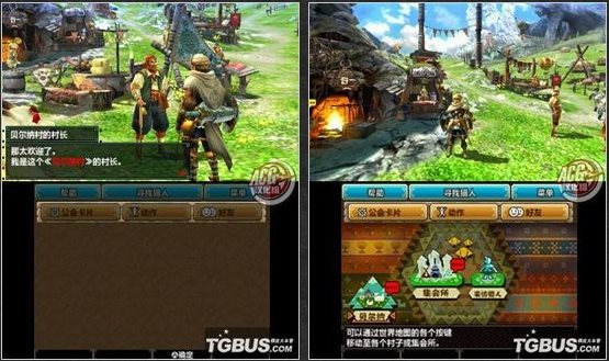 猎人们在本次的游戏中的新据点称作“贝鲁那村”(ベルナ村),从图片中可以看到本次新登场的防具装备和本