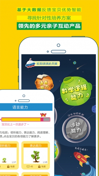 【玩测】玩,是好玩;测,是反馈。即实物与APP相结合,通过好玩的互动活动,获得专家和后台云反馈的智能报告,了解孩子的优势智能。【亲子互动】家长和孩子通过多元互动,共享亲子时光。孩子主题闯关,家长全程陪同指导,共同参与,氛围其乐融融。
