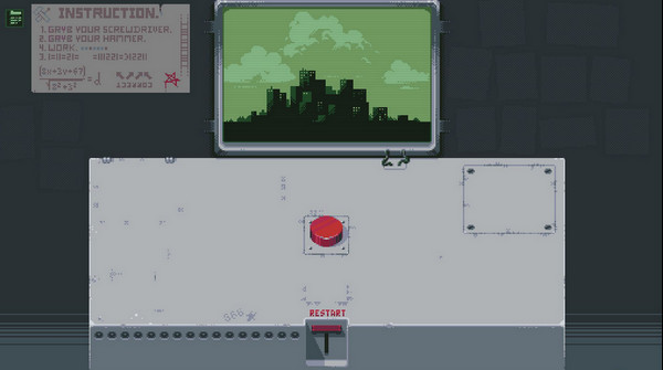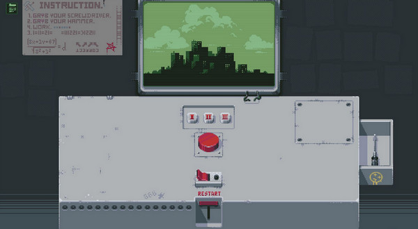 2.狂按红按钮可以得到两组按钮,一把螺丝刀,一把锤子,和死机。