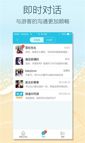 快速问导游是一款专门为旅游设计的手机服务应用,用户可以通过这款软件找到本地的导游信息,并快速连接双方,让用户能够在最短的时间内得到导游的帮助,摆脱旅行社的拘束,享受自由行的乐趣。