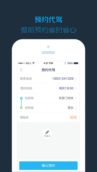e代驾app驾驶技术精良,安全送您到家,代驾责任险提供车辆高额保障。PC6苹果网编辑认为大城市里面需要代驾的人很多,累了病了,精神不佳,焦头烂额,分身乏术,的时候,酒后、商务代驾、疲劳代驾、长途代驾、代驾保养、代驾洗车、代驾接送人就可以用到E代驾,方便有安全。