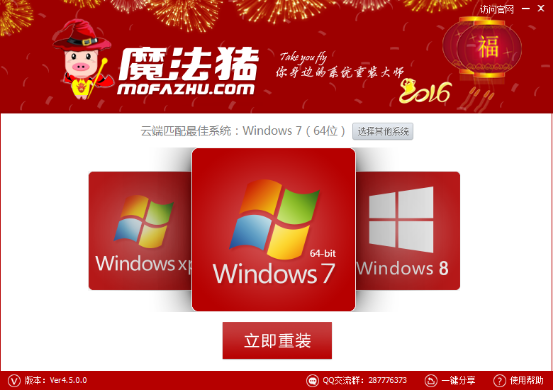 下载好魔法猪系统重装工具步骤只有两步:1、选择你需要的系统,XP/Win7/Win8等系统任您选择。