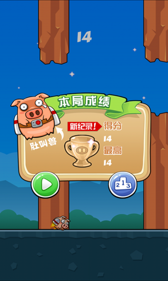 超级好玩的飞行冒险休闲游戏,简单又刺激!无数人在玩,你不来试试?挑战下你的手指,挑战下你的判断力!和朋友们较量下吧!赢取炸鸡啤酒! 游戏玩法简单和之前流行的像素鸟一样,看你能让小猪会多远,支持全排名,还等什么快来挑战吧!